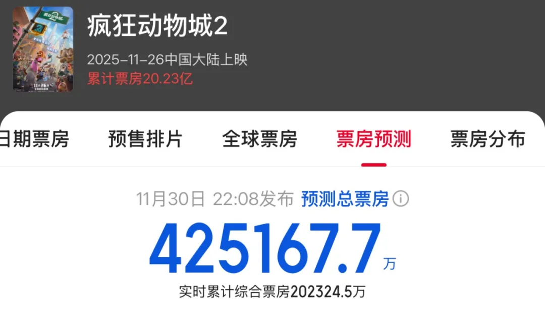 《疯狂动物城2》内地总票房有望达42.63亿元