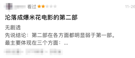 有观众认为“第二部沦落成爆米花电影”“好学生赶作业的敷衍作品”。