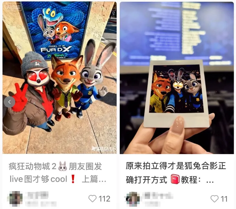除此之外,观影结束之后和警官兔朱迪与狐尼克合影,也成为各大社交平台的高频玩法。