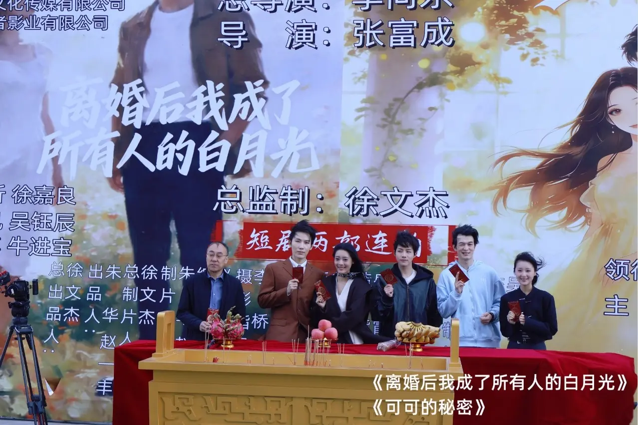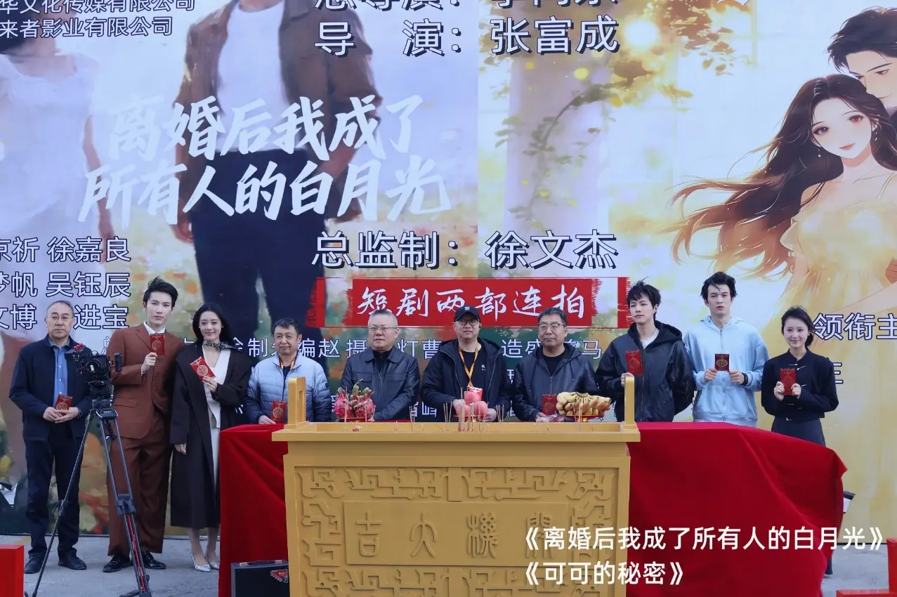 由八佰里影业集团、八佰里影业(河北)有限公司、苏州八佰里文化传媒有限公司、苏州玉尔影视传媒有限公司出品,八佰里影业(厦门)有限公司、宁波芊华文化传媒有限公司联合出品,东阳后来者影业有限公司制作的短剧《离婚后我成了所有人的白月光》《可可的秘密》于2026年4月10日在张家口风影片场正式开机。此剧总出品人为徐文杰,出品人朱华、赵一丰,总制片人徐文杰,制片人朱华、赵一丰,由徐文杰担任总监制,总导演李向东,导演张富成。