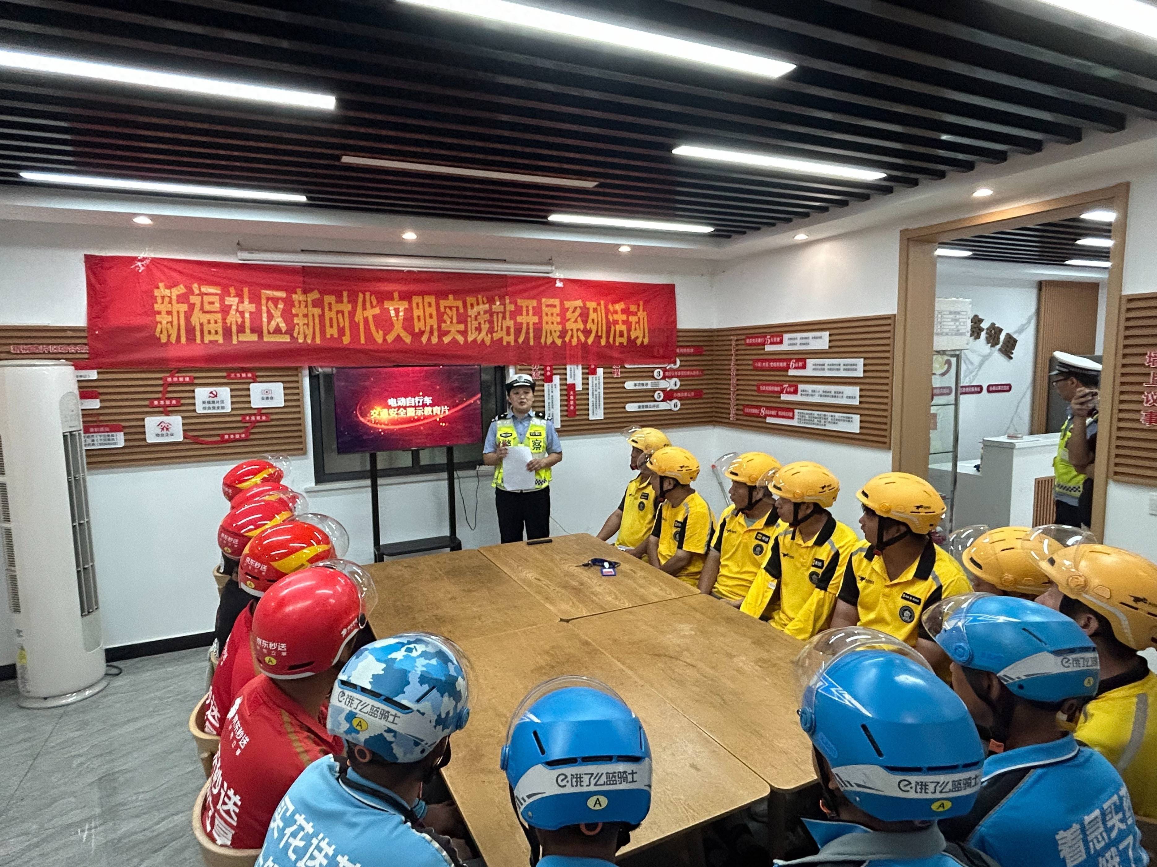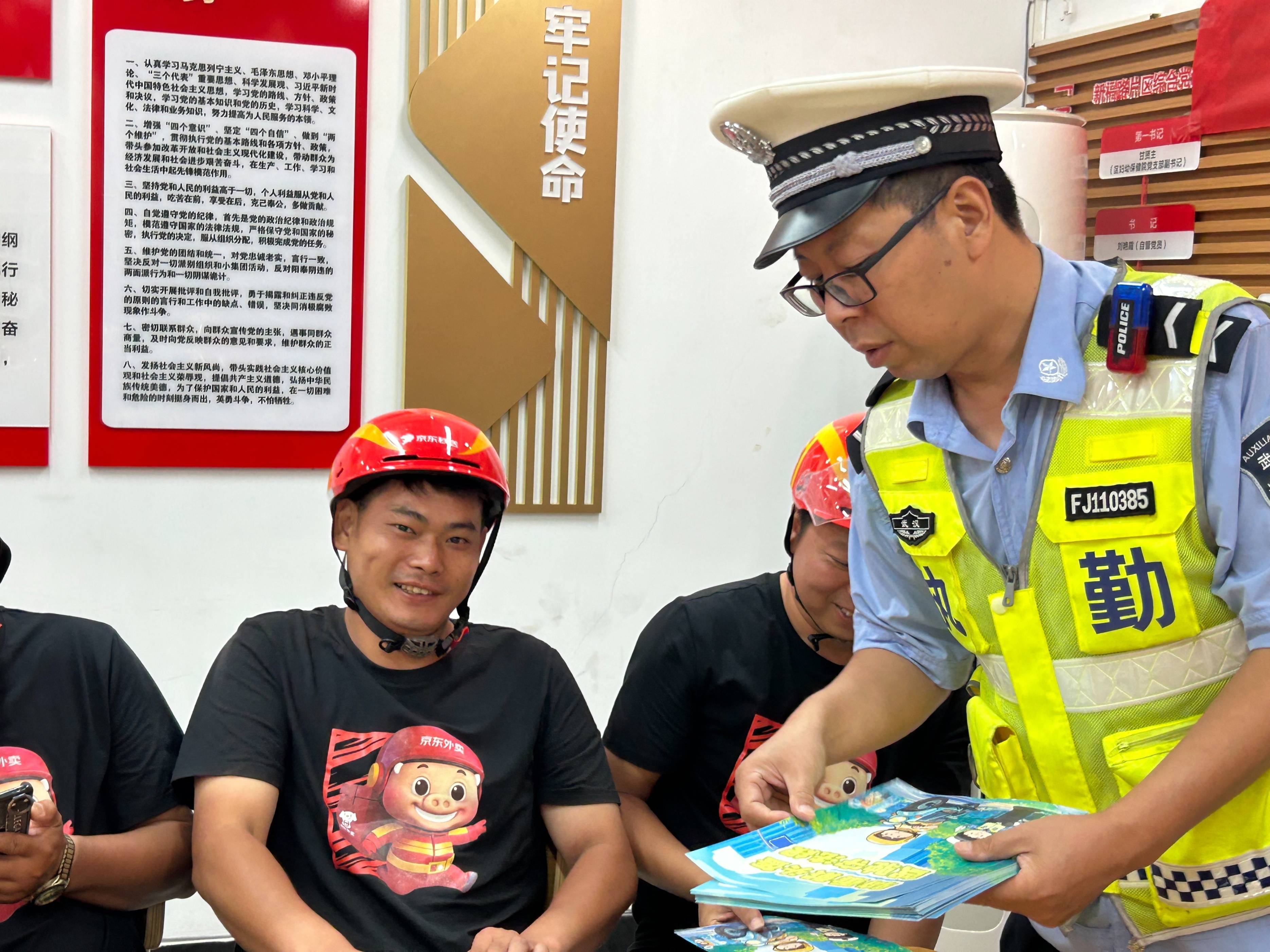 新学期伊始,大街小巷的车流也随之明显增多。为进一步提升外卖骑手的交通安全意识,切实预防和减少交通事故,2025年9月9日上午,武汉市蔡甸区公安分局交管大队宣讲小分队走进新福茂社区江城丰巢驿站站点,为辖区美团、饿了么、京东等平台的骑手专门开设了一堂“开学第一课”——主题正是与他们每日工作息息相关的“安全配送”。